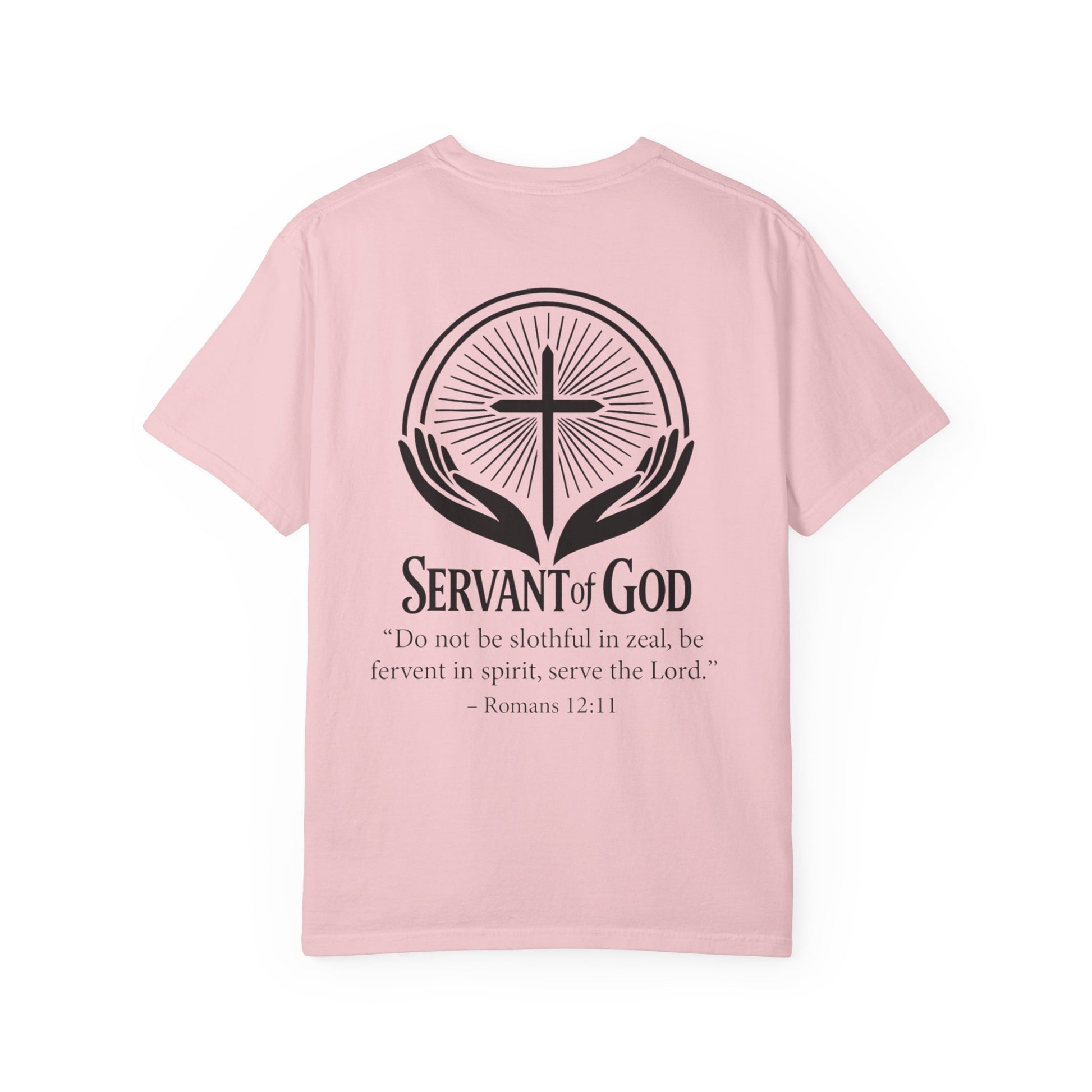 This T-Shirt from the 'Fervent Spirit' collection exudes zeal, purpose, and faith-driven action. With the inscription 'Servant of God' and the quote 'Be fervent in spirit, serve the Lord' — Romans 12:11, this tee is perfect for those seeking to showcase their faith boldly. Ideal for individuals looking for a spiritual and motivational apparel piece that reflects their beliefs. Relevant for religious holidays, church events, and daily wear to inspire and uplift.