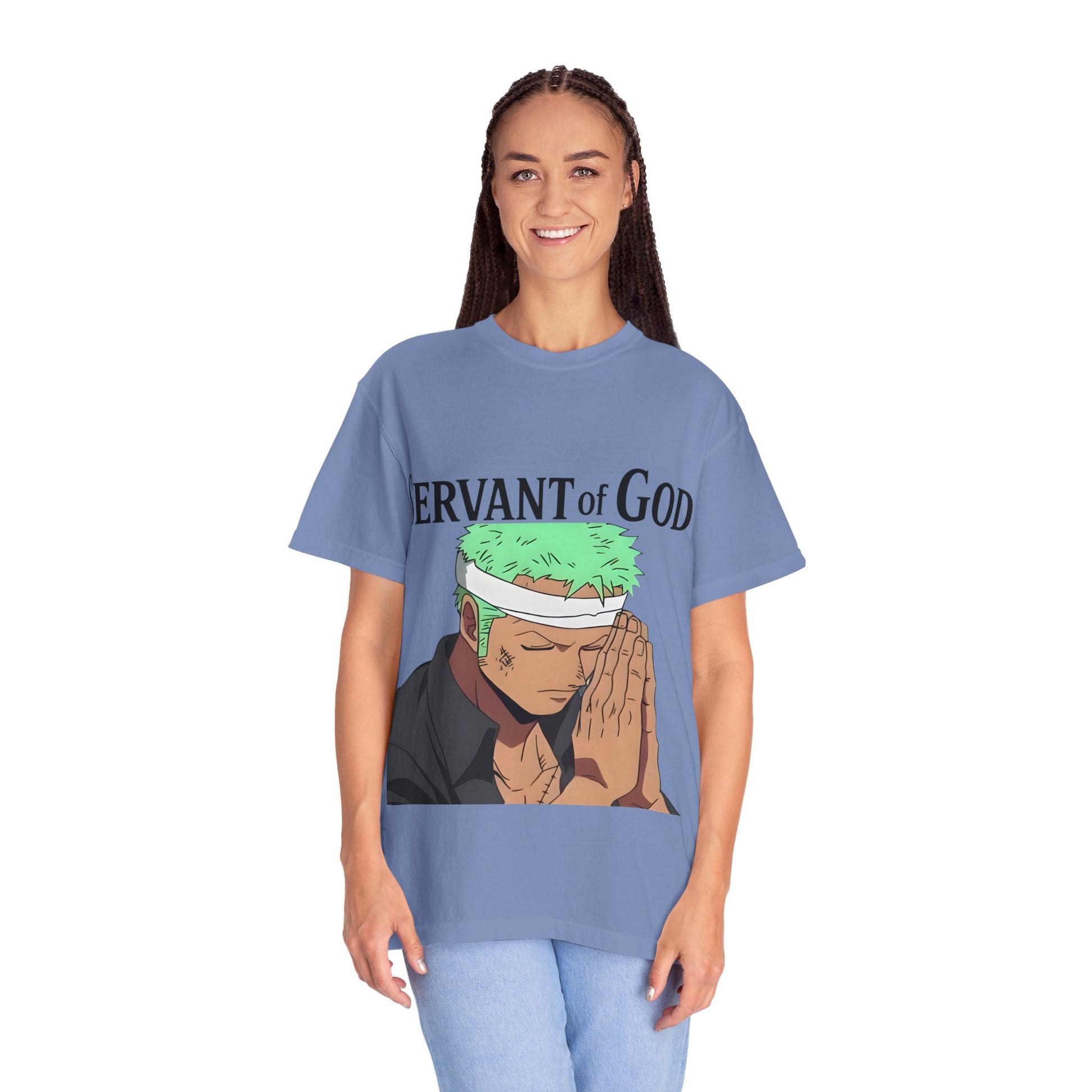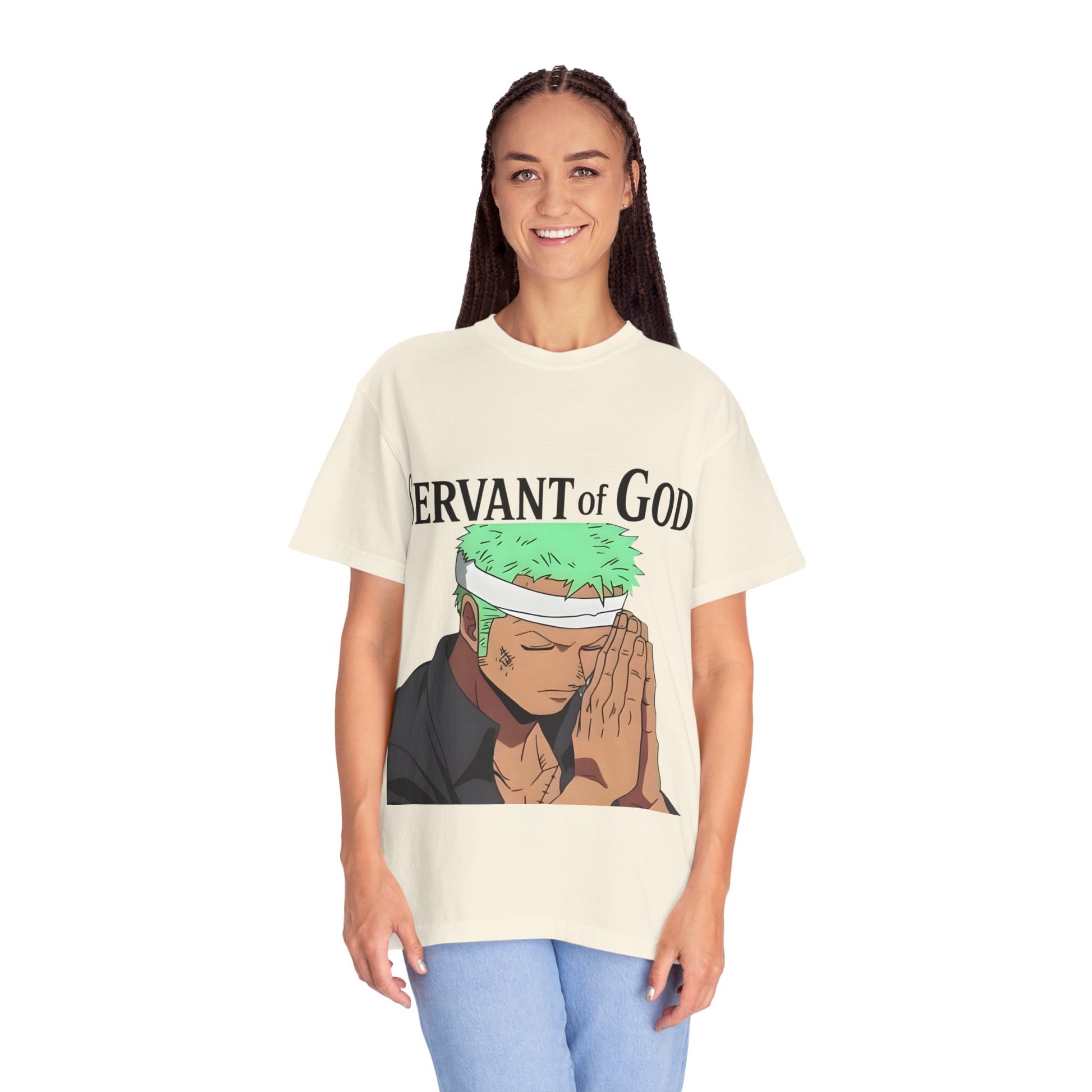 Wear your faith quietly but boldly. This garment carries the simple proclamation: Zoro, Servant of God, prayer warrior. Soft, garment-dyed cotton drapes with a lived-in feel — like a shirt that’s already been to Sunday morning and late-night prayer. It settles into your rotation for days when you want comfort without compromise, whether you’re heading to a small group, volunteering at a shelter, or meeting friends after worship. The relaxed fit and medium-weight fabric give it presence without stiffness, and the muted colors created by the post-construction dyeing feel grounded and earnest. This tee becomes part of the routine: slipped on before service, layered under a flannel for outreach, or kept handy for quiet mornings of reflection.